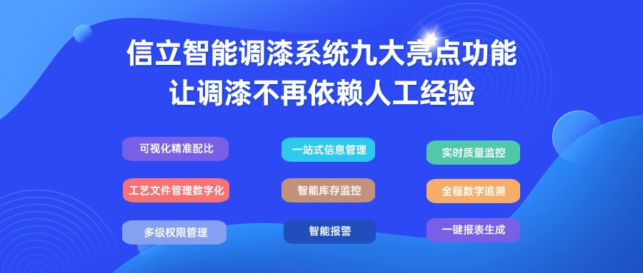 • 信立智能調(diào)漆系統(tǒng)九大亮點功能,讓調(diào)漆不再依賴人工經(jīng)驗,更簡單、更規(guī)范